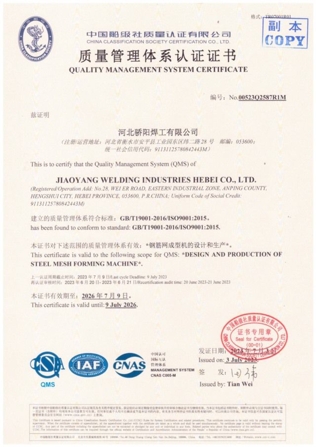 After more than 30 years'developtment, JIAOYANG is one modern group, who can develop, design and manufacture the wire mesh welding machine. And We have gotten many patents, CE, ISO and SGS Certificate.